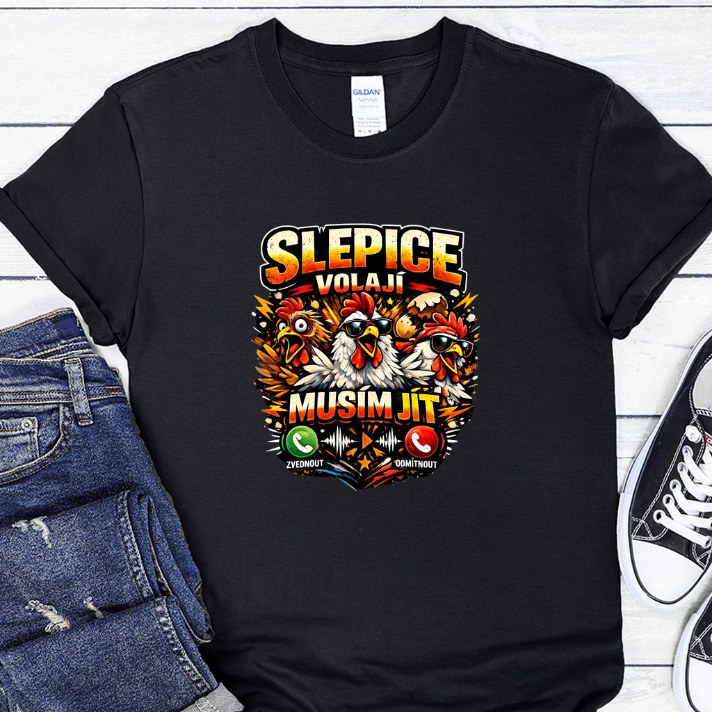 Dámské / Pánské tričko – Slepice volá, musím jít