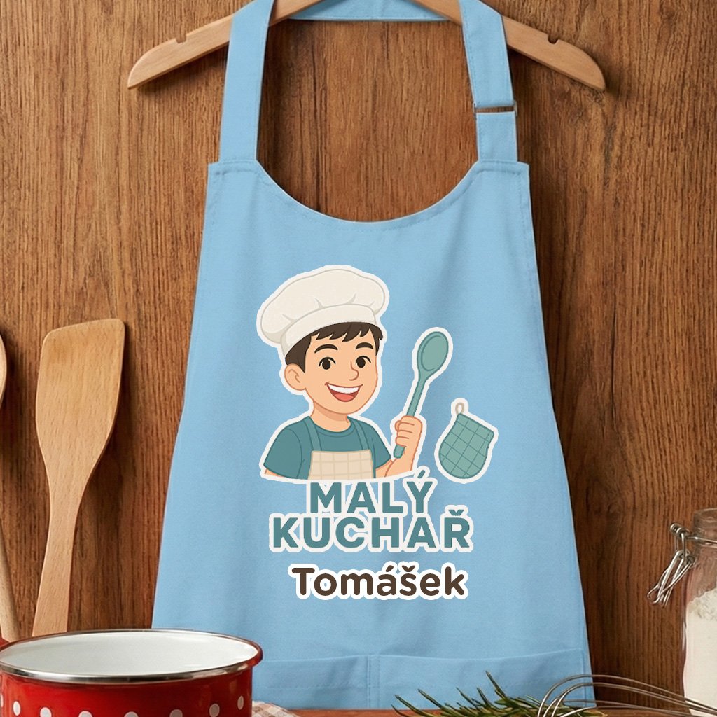 Udělejte z vašeho malého pomocníka opravdového mistra kuchyně! Tato roztomilá dětská zástěra s motivem 'Malý kuchař' a veselým kuchtíkem bude o to originálnější, když ji doplníme o jméno vašeho dítěte na přání. Perfektní dárek pro společné pečení a první kulinářské pokusy.