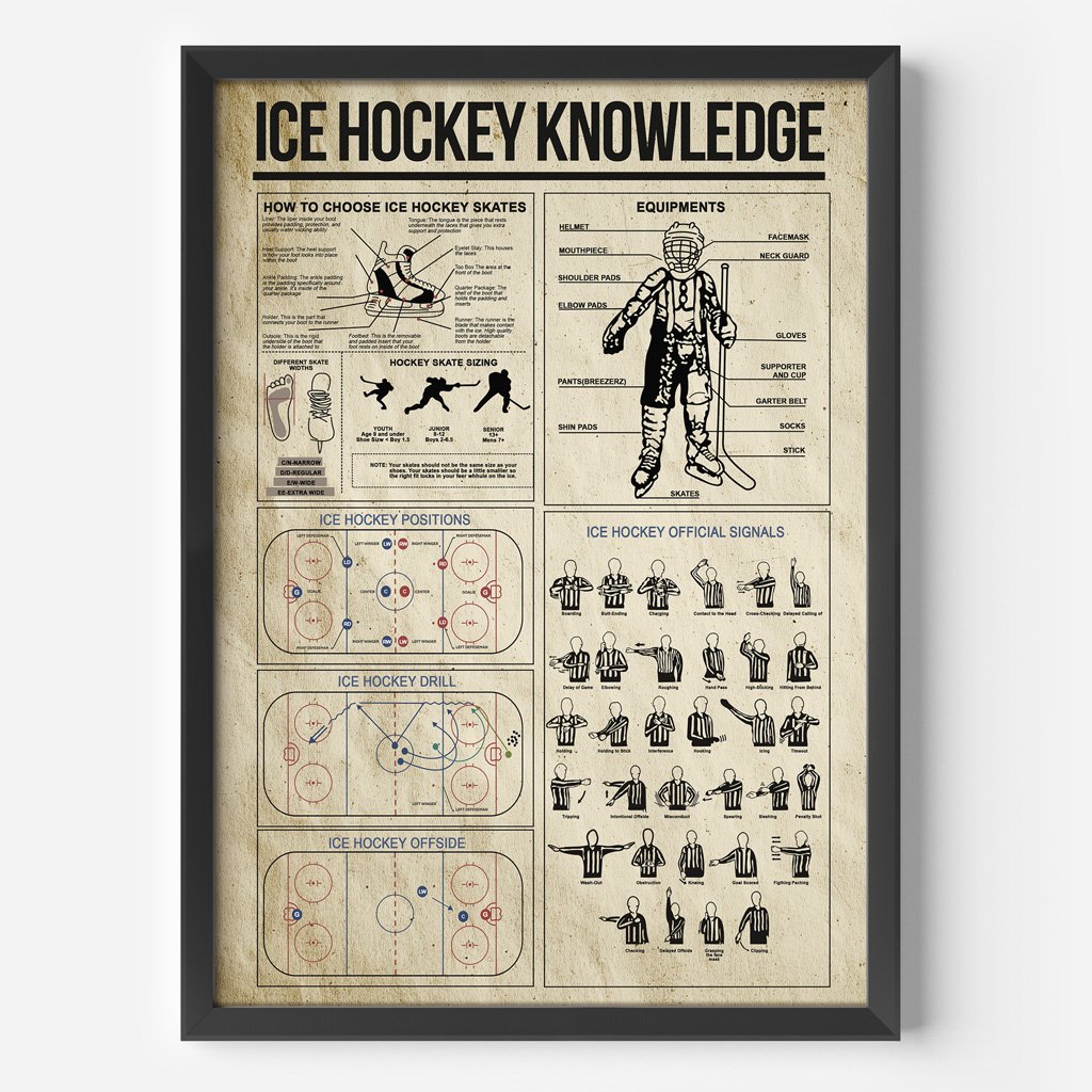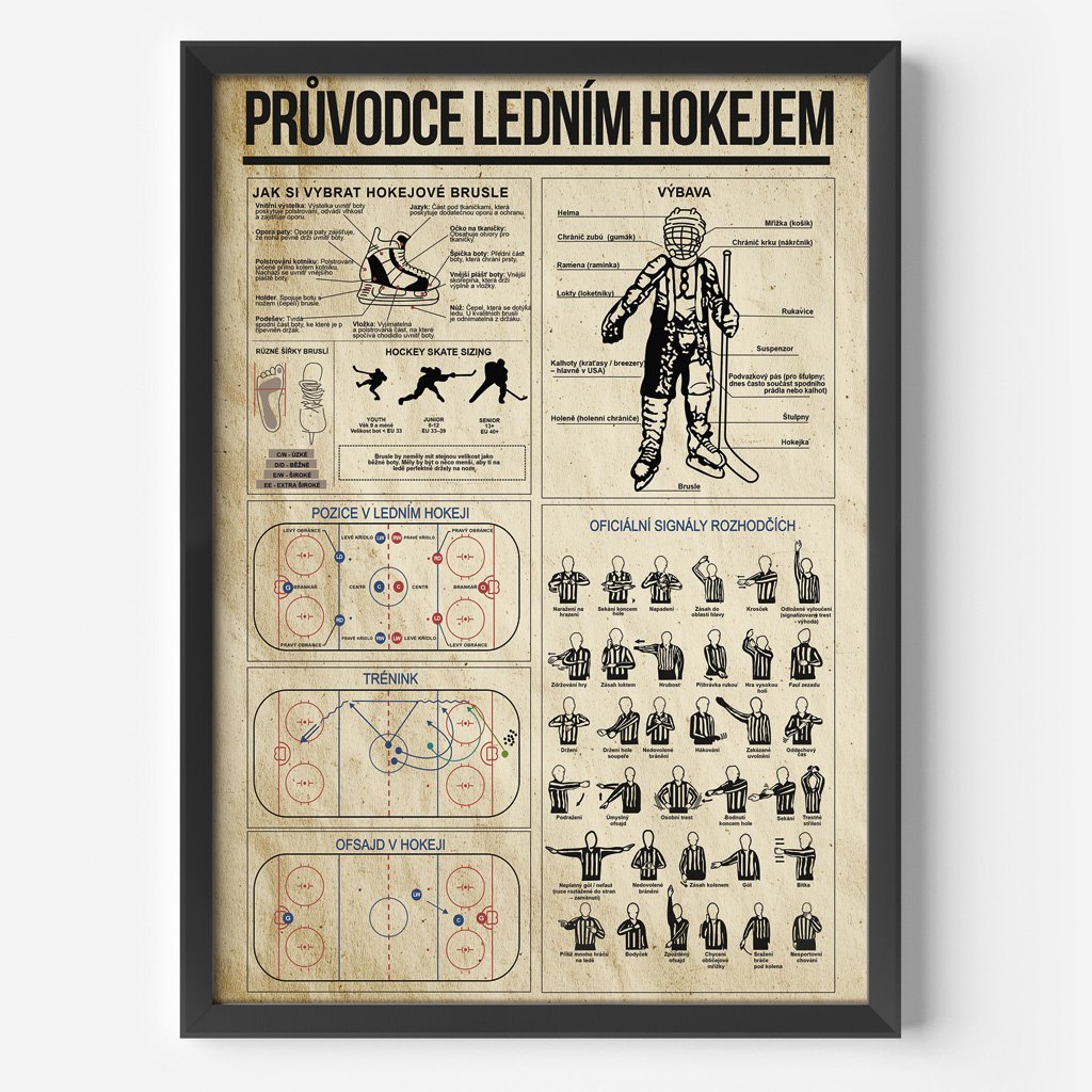 Skvělý dárek pro každého hokejového fandu nebo hráče! Stylový přehled pravidel, pozic i signálů rozhodčích – dostupný jako tisk na plátno nebo v rámečku. Ideální dekorace do pokoje, kanceláře i šatny.