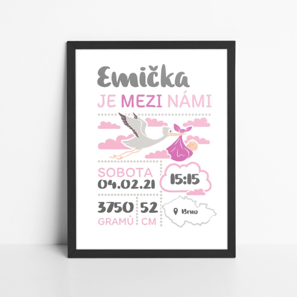 Hledáte originální dárek pro novopečené rodiče? Obraz k narození miminka se všemi důležitými údaji je ideální volbou a památkou na jeden z nejdůležitějších okamžiků v životě.
