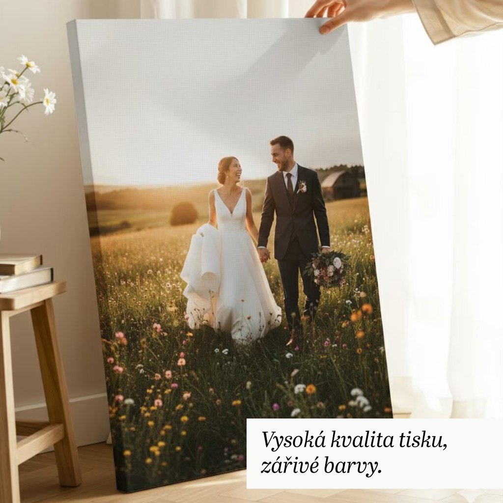Svatební fotografie a nebo Vaše fotka z dovolené, vše vynikne díky kvalitnímu tisku a plátnu. Fotoobraz na plátno udělá velkou radost. Darujte nadčasový dárek.