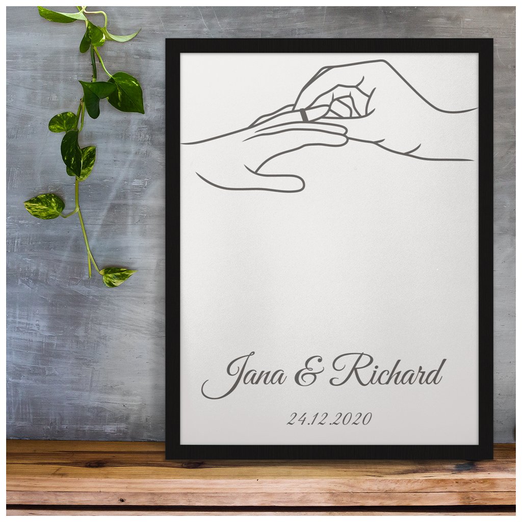 Obraz na zeď - Novomanželé s prstýnky (vlastní text)