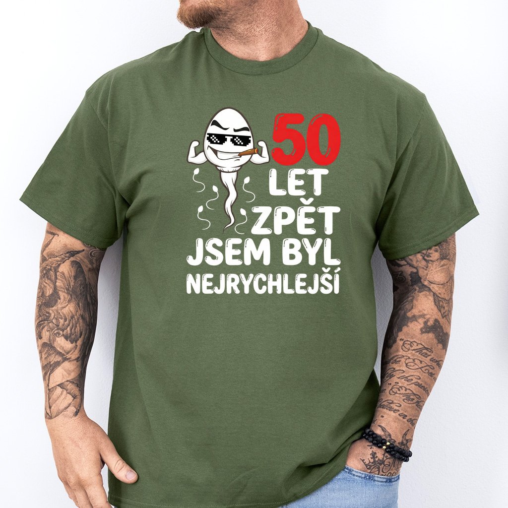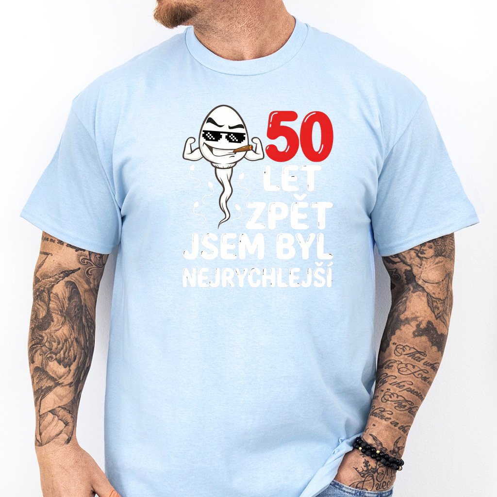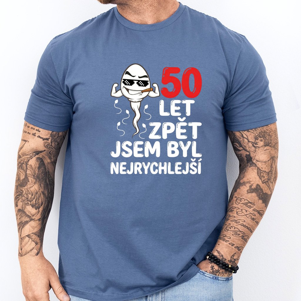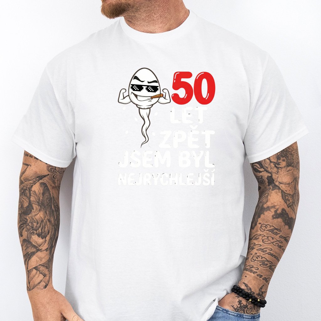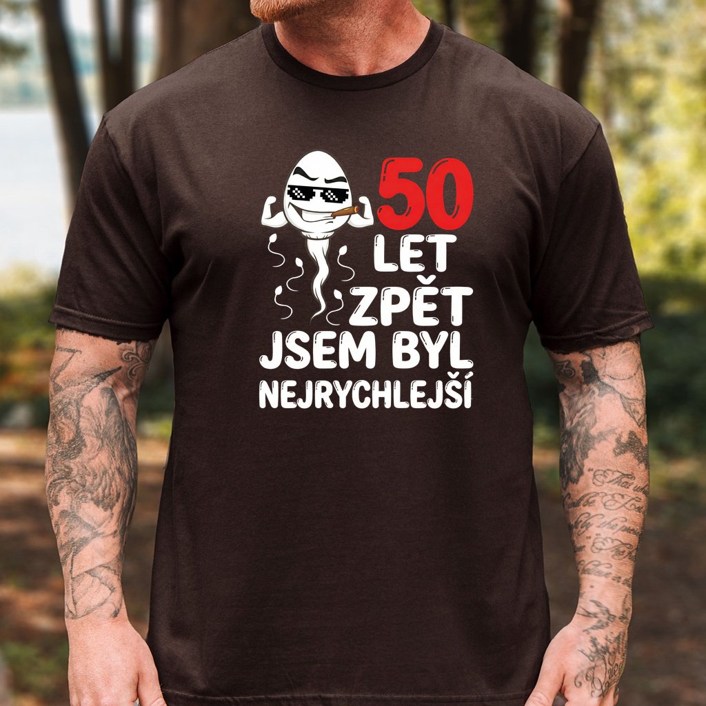 Vtipné narozeninové tričko pro padesátníka, který dobře ví, že kdysi býval ten nejrychlejší. Skvělý dárek pro muže, co mají nadhled a smysl pro humor.
