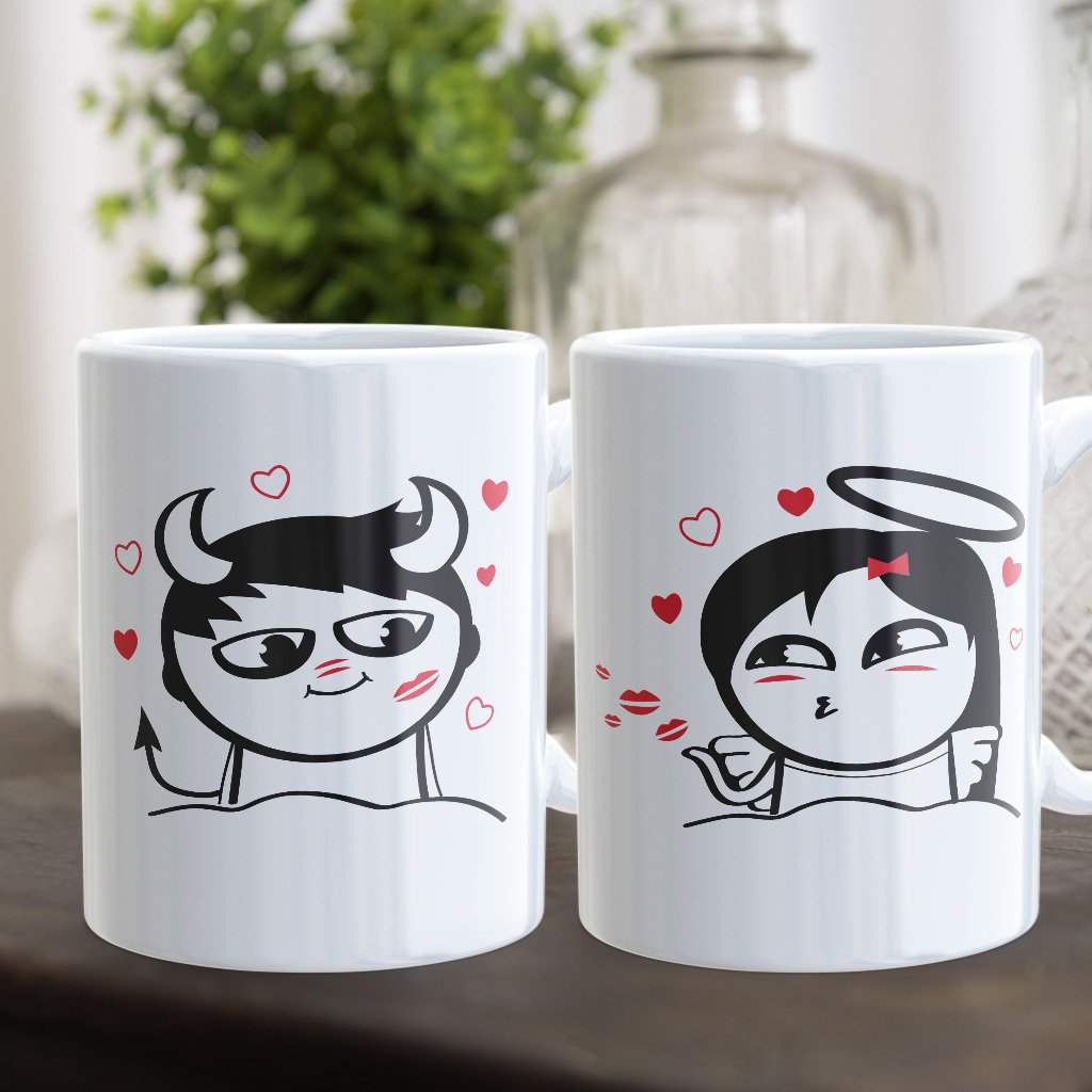 2 kusy párových hrnečků z edice Cute Buddies s potiskem andělíčka a ďáblíka.