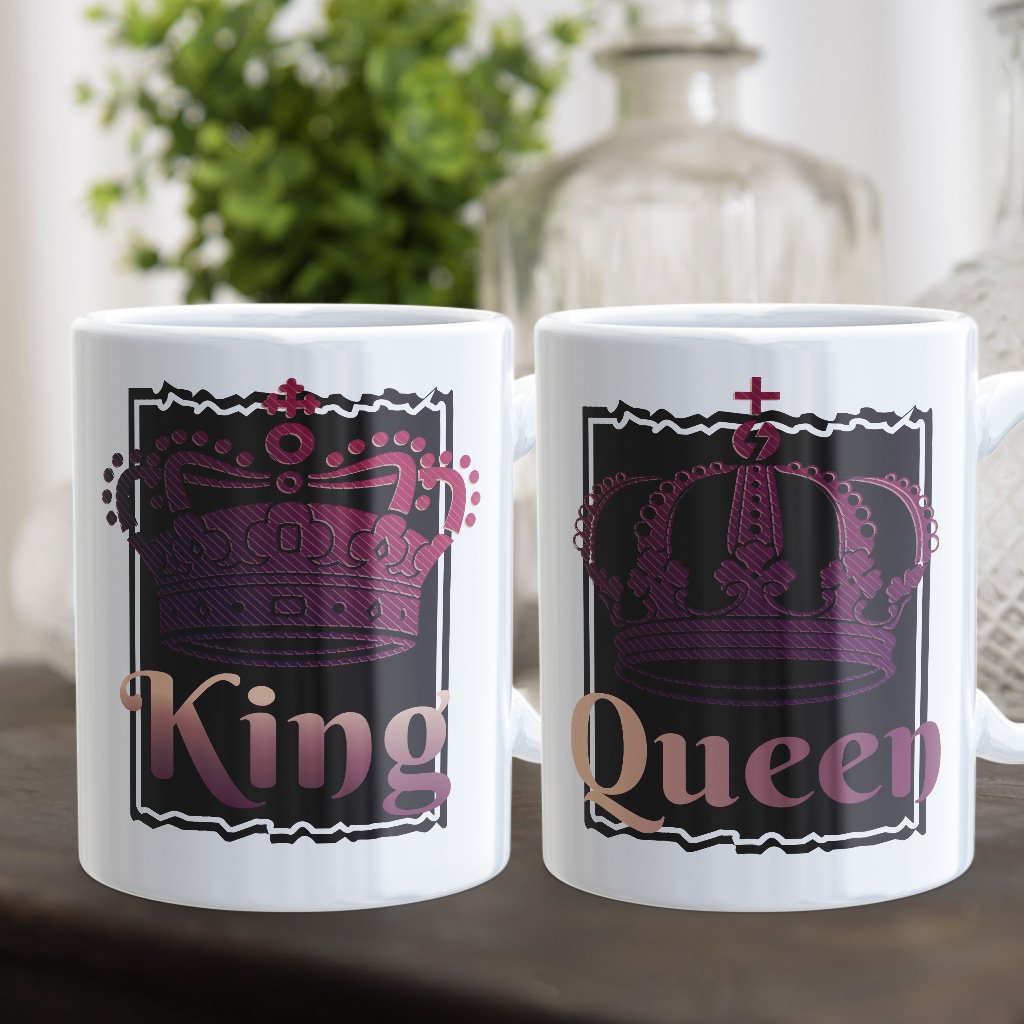 2 kusy párových hrnečků z edice pro páry s potiskem „King & Queen royal“.