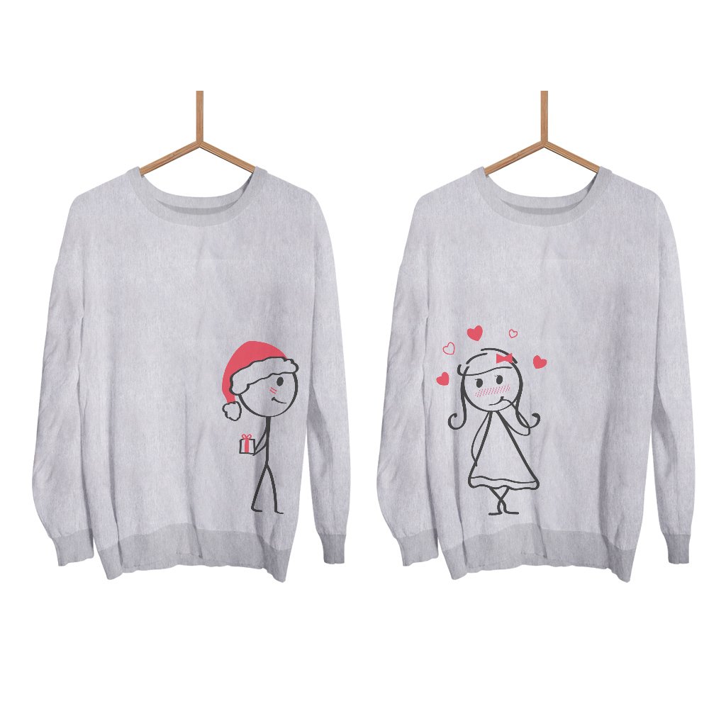 Párové mikiny bez kapuce Cute Buddies Xmas Present (cena za obě mikiny)