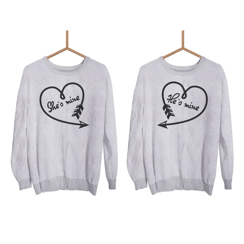 Párové mikiny bez kapuce He is mine & She is mine (cena za obě mikiny)
