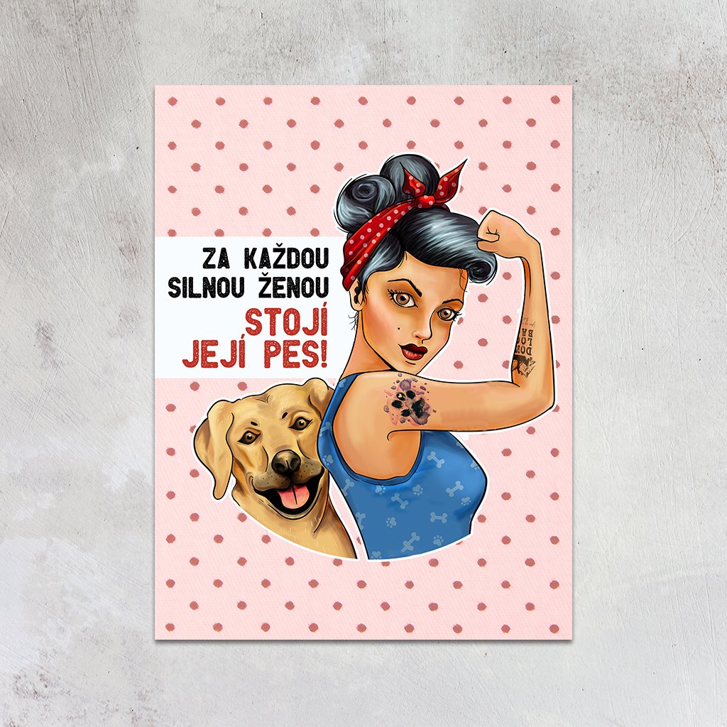 Plechová destička Silna žena se psem (Velikost 27x18cm)