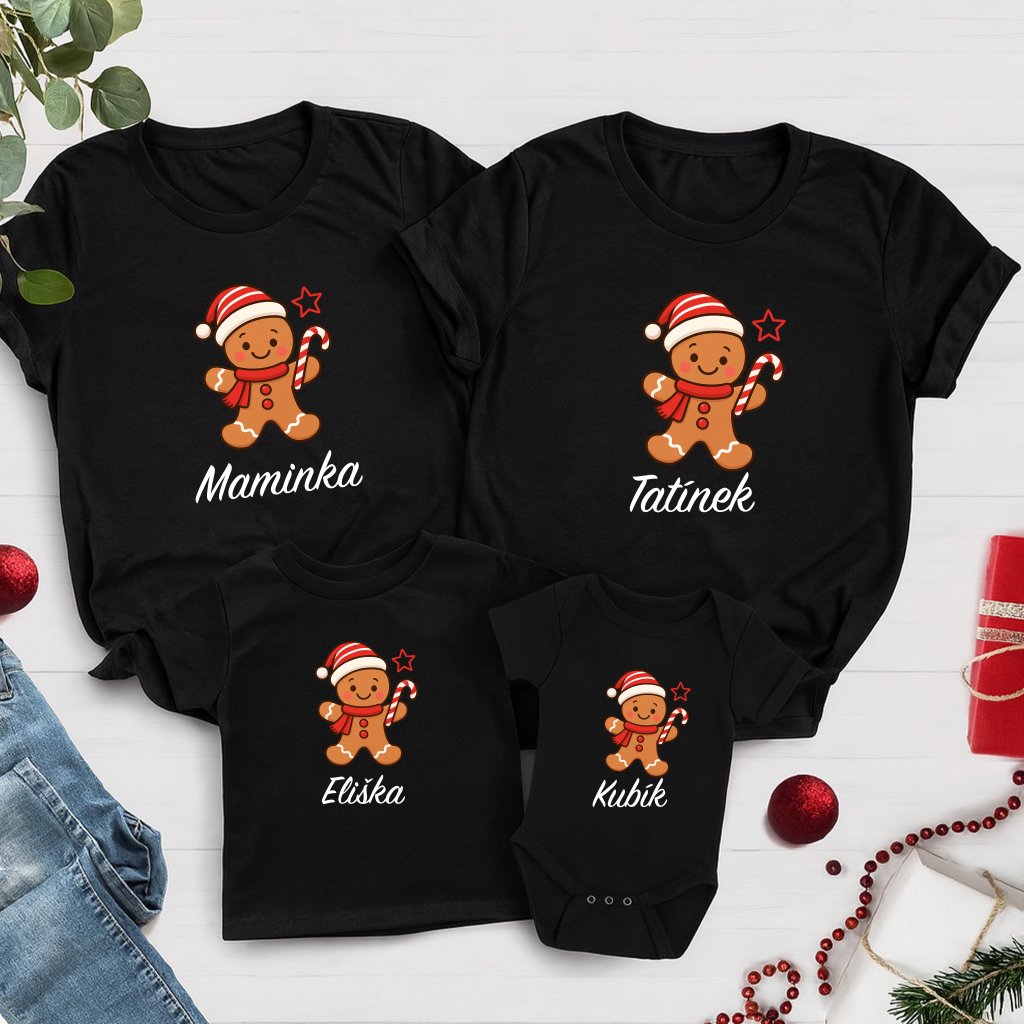 Ladící rodinná trička s roztomilým perníčkem ve vánoční čepici – ideální pro společné focení, domácí pohodu i vánoční dárky. 🎅🍪❤️