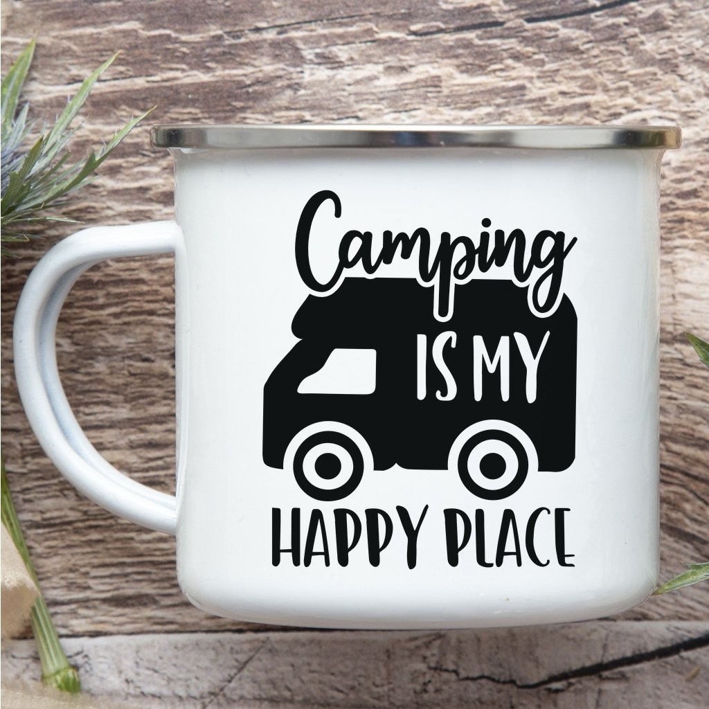 Smaltový plecháček – Camping Is My Happy Place