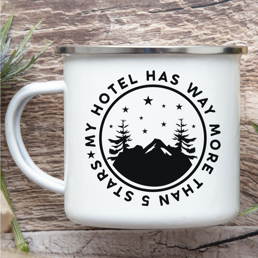 Odolný smaltový plecháček je lehký, praktický a potisk v české výrobě drží i při častém používání na cestách.